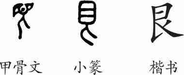 “艮”是象形字。甲骨文上部是一只大眼睛(横目),下部是一个面朝右而立的人。小篆中的目变为竖立的目。隶变后楷书写作“艮”。