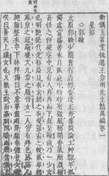 《星部》述星辰与人的情义纠葛。《郭翰》叙太原郭翰与织女的幽期佳会。《张遵言传》叙太白金星化作白犬被张遵言豢养了四年,当张遵言有厄,太白金星尽力相救,知恩报德的义举。