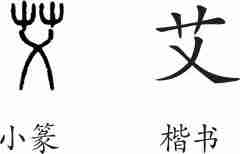 “艾”是形声字。小篆从艸(艹),义声。隶变后楷书写作“艾”。