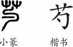 “芍”是形声字。小篆从艸,勺声。隶变后楷书写作“芍”。
