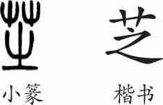 “芝”是形声字。小篆从艸(艹),之声。隶变后楷书写作“芝”。