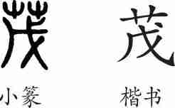 “茂”是形声字。小篆从艸,戊声。隶变后楷书写作“茂”。
