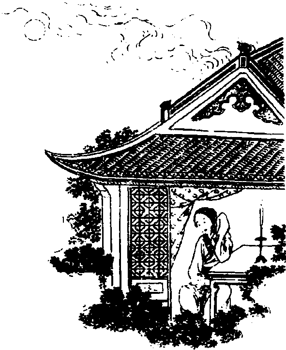 上阕写夜间楼外的景致,通过对园林景色的描绘,透露出思妇的无限惆怅。楼阁在树荫遮蔽下露出一角,一轮明月照东厢,栏杆的阴影斜卧在地面上。起头两句即渲染出环境的幽美静谧。“一天风露,杏花如雪”,经过白天一整天的风拂露润,雪白的杏花在夜晚一朵朵绽放。这里“杏花如雪” 与融融月色构成一幅极谐和的春夜图。