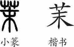 “茉”是后起字,为形声字。楷书写作“茉”,从艸,末声。