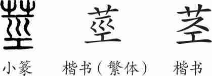 “茎”是会意兼形声字。小篆从艸(艹),从巠(直的经线),会植物的主干之意,巠兼表声。隶变后楷书写作“莖”。汉字简化后写作“茎”。