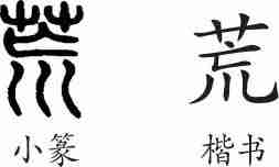 “荒”是会意兼形声字。小篆从艸(艹),从巟(水广),会草长满田地之意,巟兼表声。隶变后楷书写作“荒”。