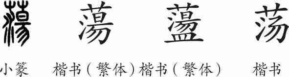 《说文·水部》:“蕩,水也。从水,昜声。”(蕩,水名。从水,昜声。)《说文·皿部》:“盪,涤器也。从皿,湯声。”
