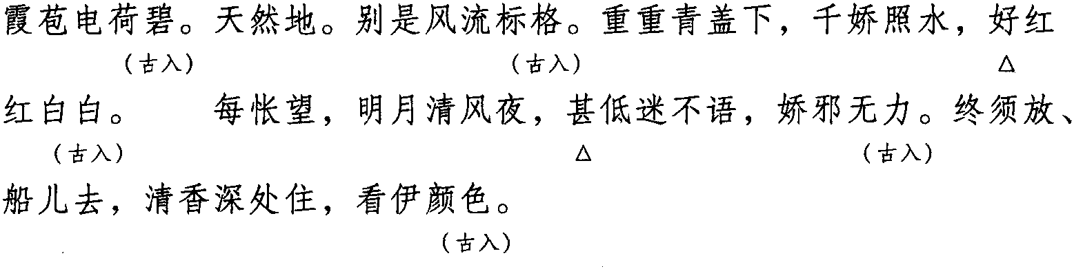 注: 本词例押古入声“陌” “职” 韵。因 “陌” “职” 在古韵中与“碧” “力”同韵,而 “碧” “力” 在现代韵中同属 “衣” 韵,故全调可押衣部“衣” 韵。