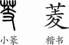 “菱”是形声字。小篆从艸,夌声。隶变后楷书写作“菱”。