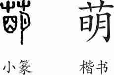 “萌”是形声字。小篆从艸(艹),明声。隶变后楷书写作“萌”。