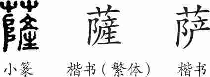 “萨”是形声字。楷书繁体写作“薩”,从艹,声。汉字简化后写作“萨”。