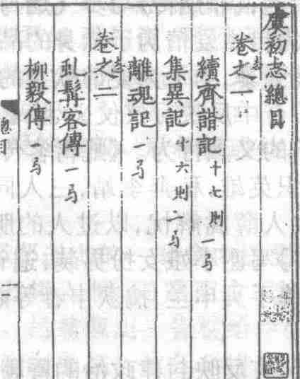 明弦歌精舍如隐草堂刊本《虞初志》目录书影