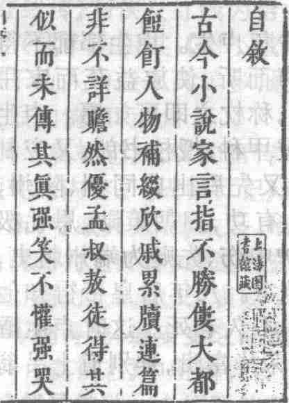命者事迹的《邹容传》等;一些近代文学家事迹的《李伯元传》、《我佛山人传》等。 人物传记虽有故事的述略,却不是小说。 至于游记以及诔、诰等纪念文章,更溢出了小说的范围。书中某些篇章以宣扬孝子节妇的封建操行为感情核心,张扬礼教桎梏人性人情的忠、孝、节、义。《书义佣陆庆事》叙佣工陆庆割股疗救主人晦斋翁事。《采纯传》叙采纯失节后的忧郁艰辛而最终痛改前非,割肉疗夫,终于殉夫事。《今列女传·节义》叙某妇为丈夫精心编织了一精致斗笠,作为爱情表征。不料丈夫却以八万钱卖与一贵公子,妇得知此事,愧悔所托非人,悲愤无言,自杀身亡,等等。