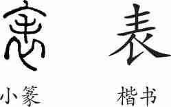 “表”是会意字。小篆从衣,从毛,会皮袄之意。隶变后楷书写作“表”。