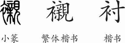 “衬”是形声兼会意字。楷书繁体写作“襯”,从衣,親(亲)声,親兼表亲近之意。汉字简化后写作“衬”。