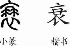 | 诗文 | 《衰》字义,《衰》字的字形演变,小篆隶书楷书写法《衰》 |