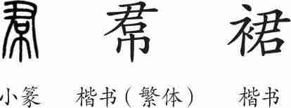 “裙”是形声字,小篆从巾,君声。隶变后楷书写作“帬”。汉字简化后写作“裙”。