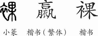 “裸”的本义为赤身裸体,光着身子。如“裸戏”。又引申指露出的身体。如《左传·僖公二十三年》:“及曹,曹共公闻其骈胁。欲观其裸。”后泛指无毛、羽、鳞、甲的动物。如“裸虫”,指没有羽、毛、鳞、甲的动物。包括有人类、蚯蚓等。