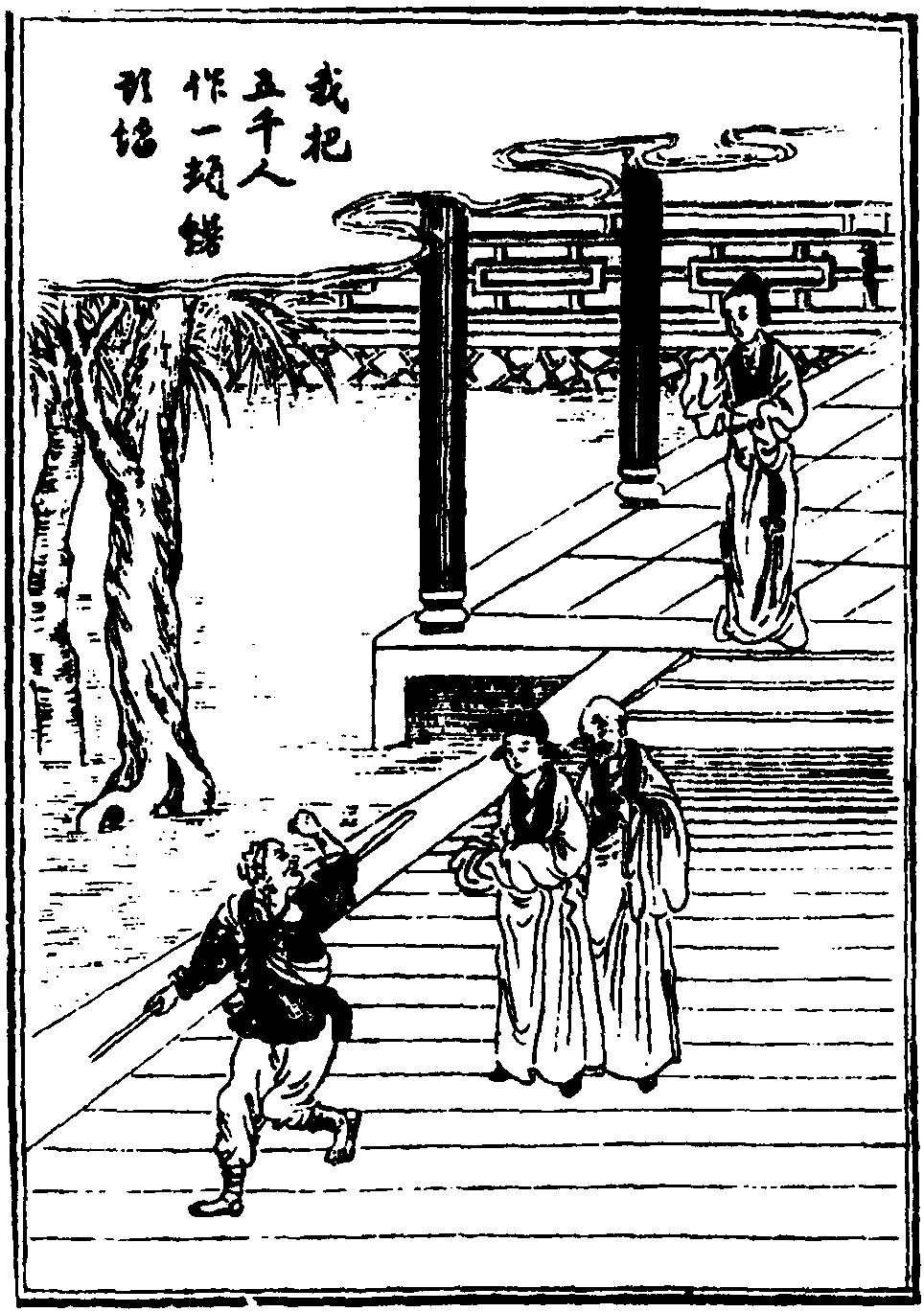【滚绣球】 非是我贪,不是我敢,知他怎生唤做打参,大踏步直杀出虎窟龙潭。非是我搀,不是我揽,这些时吃菜馒头委实口淡,五千人也不索炙煿煎爁。腔子里热血权消渴,肺腑内生心且解馋,有甚腌臜!