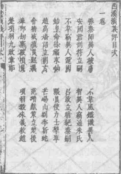 明末刊《剑啸阁批评东西汉通俗演义》本《西汉演义》目录书影