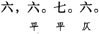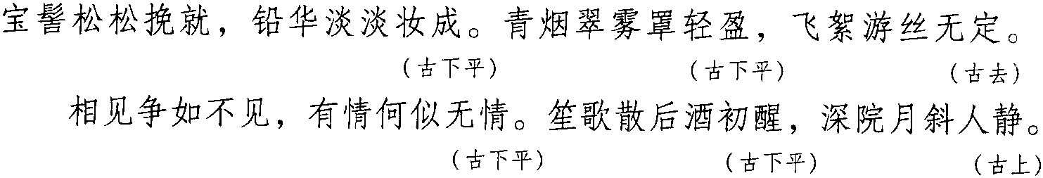 注:本词例押古下平声“庚” “青”韵,古上声“梗”韵,古去声“径”韵。因“庚” “青” “梗” “径”在现代韵中属“声”韵,故全调可押东部“声” 韵。
