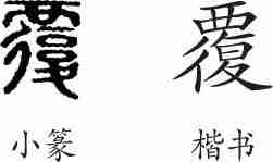 “覆”是形声字。小篆从,復声。隶变后楷书写作“覆”。