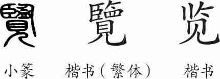 “览”是形声兼会意字。小篆从見,从監(照影),会观察之意,監兼表声。隶变后楷书写作“覽”。汉字简化后写作“览”。