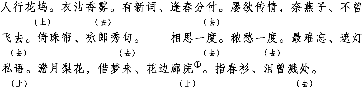 注:一、本词例押衣部“居”韵。本押古上声“麌”韵,古去声“御” “遇”韵,因“麌”“御”“遇”在现代韵中属“居”韵,故全调可押“居”韵。