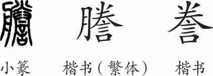 “誊”是形声字。小篆从言,朕声。隶变后楷书写作“謄”。汉字简化后写作“誊”。