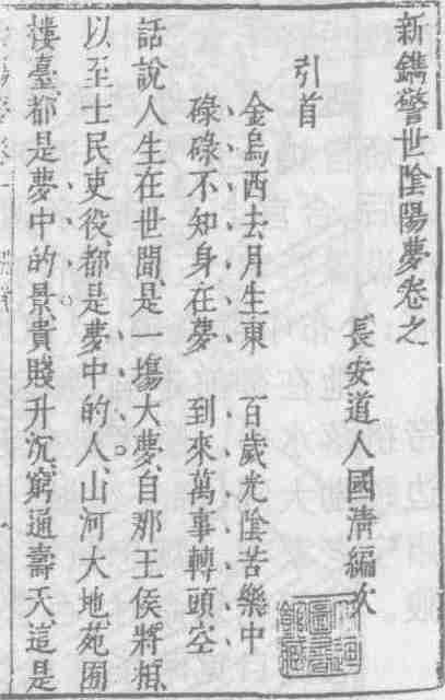 明崇祯元年(1628)刊本《警世阴阳梦》扉页书影