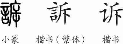 “诉”是形声字。小篆从言,斥声。隶变后楷书写作“訴”。汉字简化后写作“诉”。