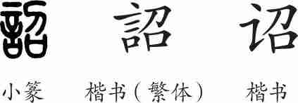 “诏”是会意兼形声字。小篆从言从召会意,召兼表声。隶变后楷书写作“詔”。汉字简化后写作“诏”。