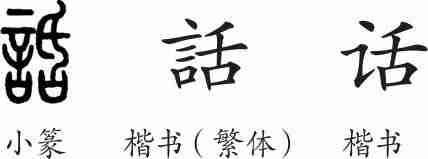 “话”是形声字。小篆从言,声。隶变后楷书写作“話”。汉字简化后写作“话”。