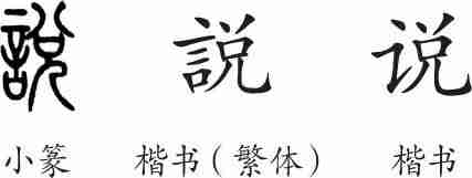 “说”是会意兼形声字。小篆从言从兑会意,兑兼表声。隶变后楷书写作“説”。汉字简化后写作“说”。