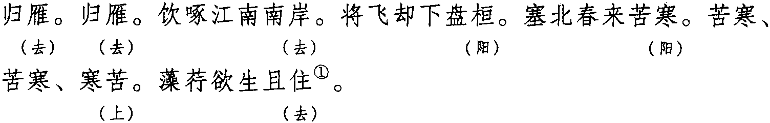 注:一、本词例仄韵押山部“山” “天”韵,平韵押姑部 “姑”韵。