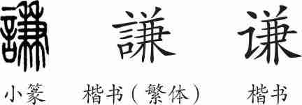 “谦”是形声字。小篆从言,兼声。隶变后楷书写作“謙”。汉字简化后写作“谦”。