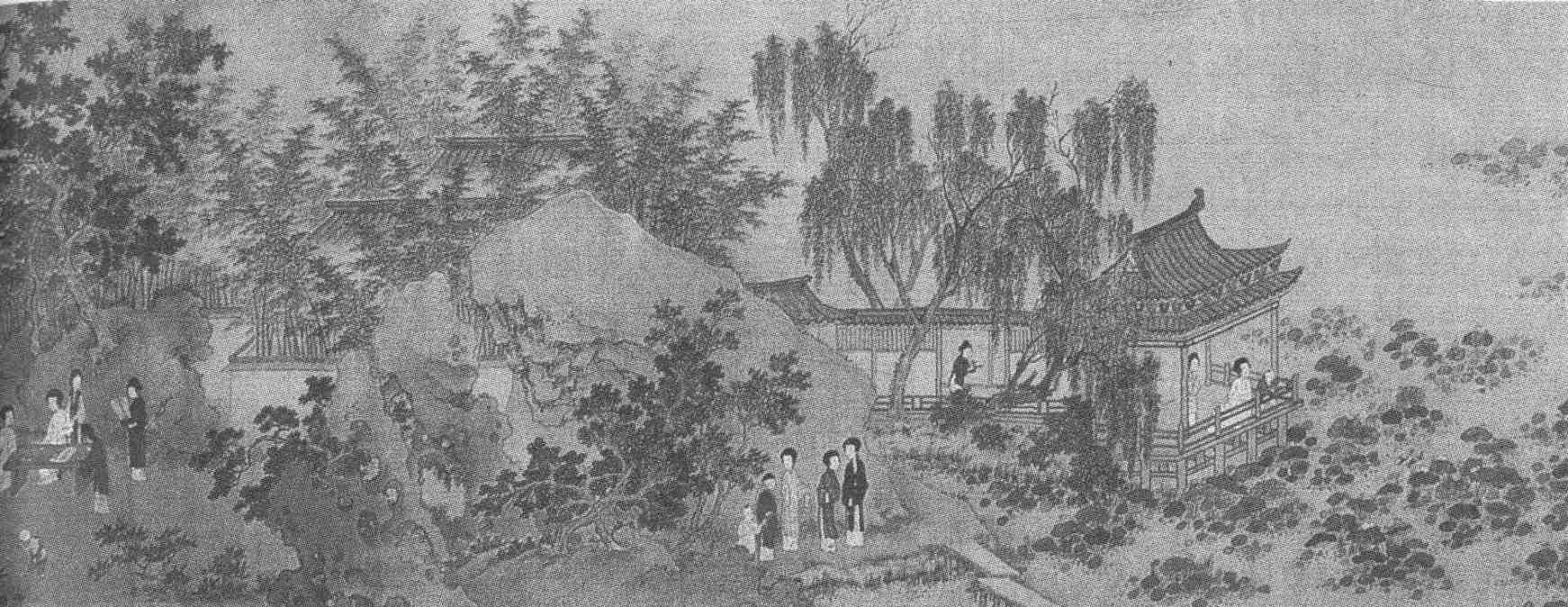 在中国古代山水画史上,善于融合春夏秋冬四时景色于一卷的作品尚不多见,目前已知较早使用这种绘画形式的画家,较著名的当推南宋刘松年,他创作的《四景山水图》卷对后世影响很大。杨晋绘于康熙二十七年(1688)的《豪家佚乐图》卷就是采用这个绘画形式,并吸取了中国传统长卷画在时间和空间上的特殊方法,具有较浓的浪漫色调。