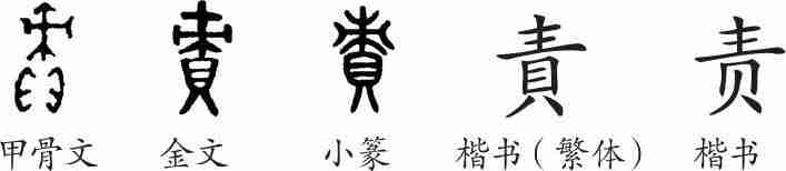 “责”是会意兼形声字。甲骨文从貝,从朿,会用尖木刺取贝中肉而食之意,朿兼表声。金文与甲骨文致相大同。小篆整齐化。隶变后楷书写作“責”,汉字简化后写作“责”。