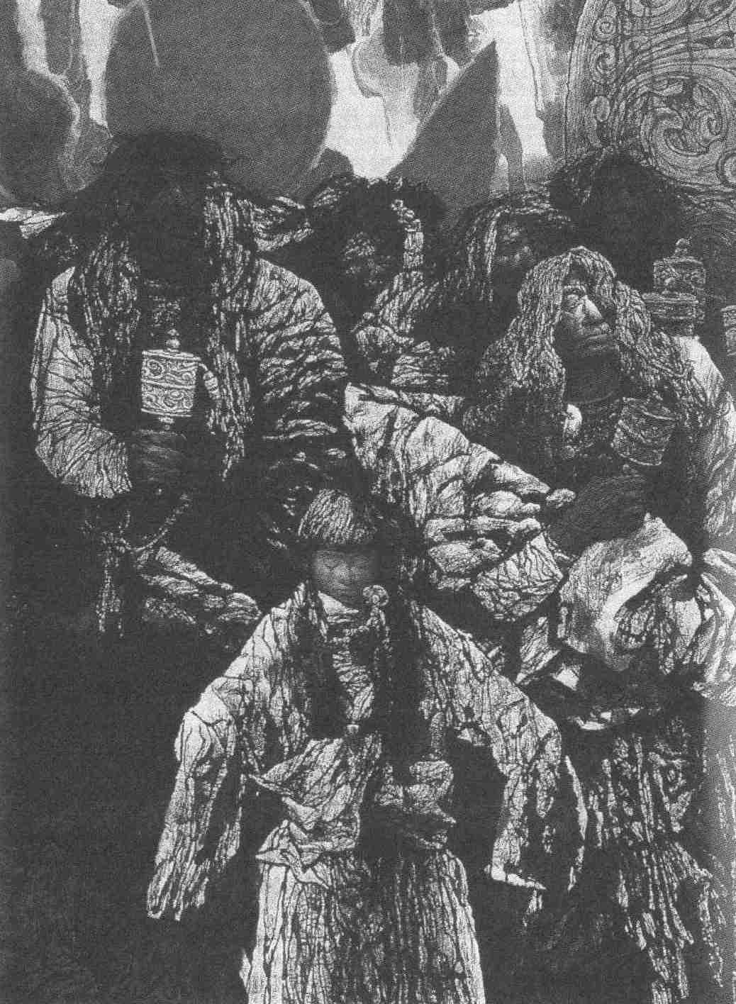 李伯安创作《走出巴颜喀拉图》,始于1988年,成于1998年,前后凡十年。全卷分十段:圣山之灵、开光大典、朝圣、哈达、玛尼堆、劳作、歇息、藏戏、赛马、天路。神态各异的真人一样高大的群像有二百六十六人,呕心沥血,人画两化,鸿裁巨制,史所罕见。画的主色为墨白两色,图中氤氲着壮烈、雄阔、朴厚、苦涩、沉重、苍茫、粗犷之气,兀使观众感到伫立在大画前有扑人眉宇的浓重真情和虔诚的宗教心。兀是气摩霄汉,神慑乾坤。