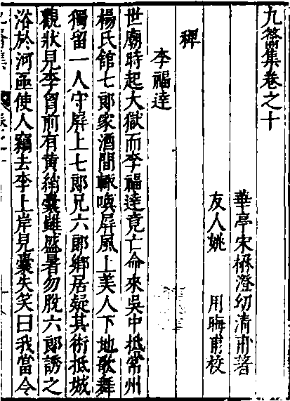 明嘉靖年间,术士李福达至吴中,馆于常州杨氏七郎家,有异术,能令屏风上美人下地歌舞。七郎兄六郎居乡间,疑其术,使人将李常挂胸前之绡囊窃去,李使术让窃者眼睛突出而自述窃囊事,六郎谢罪。李至七郎家,于中秋夜与诸人饮酒,朗月当空,李忽拔檐下一瓦出三寸许,众人皆不解其故。明日,复至六郎家,众人始惊昨夜惟七郎家见月。众人复邀李现月,李拂袖空中,云开月现。六郎居室旁大池老蛟为魅,荆州太守请李捕蛟,李杀之付厨中作鲊,此后安宁无事。李返吴门,为从奴告,系于狱,刑具不能加;又作法让狱中人日日饮酒。后谪戍滇中,李又作法置身于酒家胡及诸贵人家。抵京口,主人知其异,莫敢辞之;主人复窥其作法处置叛奴,愈加敬畏。后送至渡口而别。