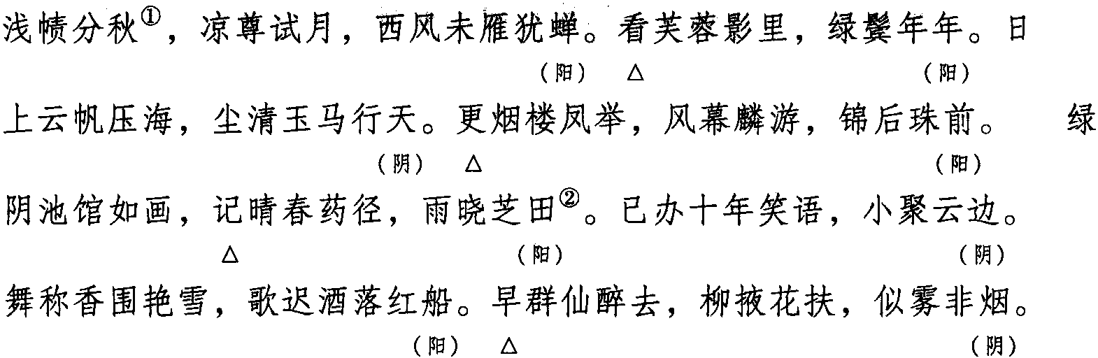 注: 一、本词例押山部 “山” “天” 韵。