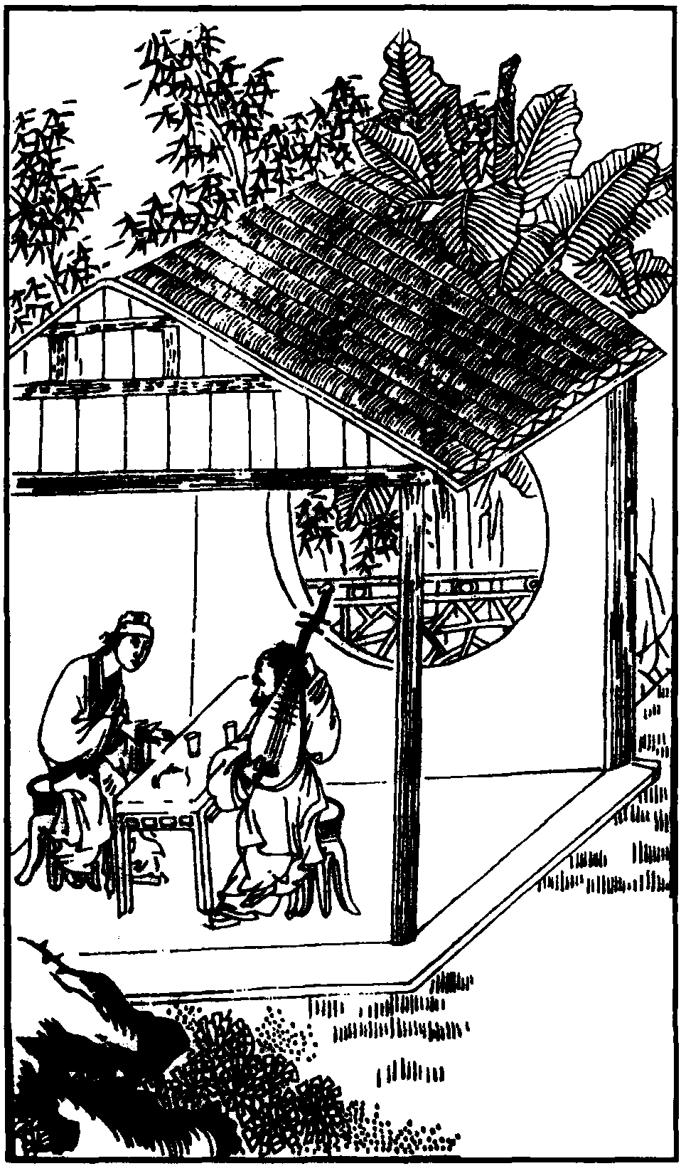 (末白须,旧衣帽抱琵琶上) 老汉李龟年,昔为内苑伶工,供奉梨园,蒙万岁爷十分恩宠。谁想禄山造反,破了长安,老汉来到江南地方,盘缠都使尽了。只得抱着这面琵琶,唱个曲儿糊口。今日乃青溪鹫峰寺大会,游人甚多,不免到彼卖唱。(行科)