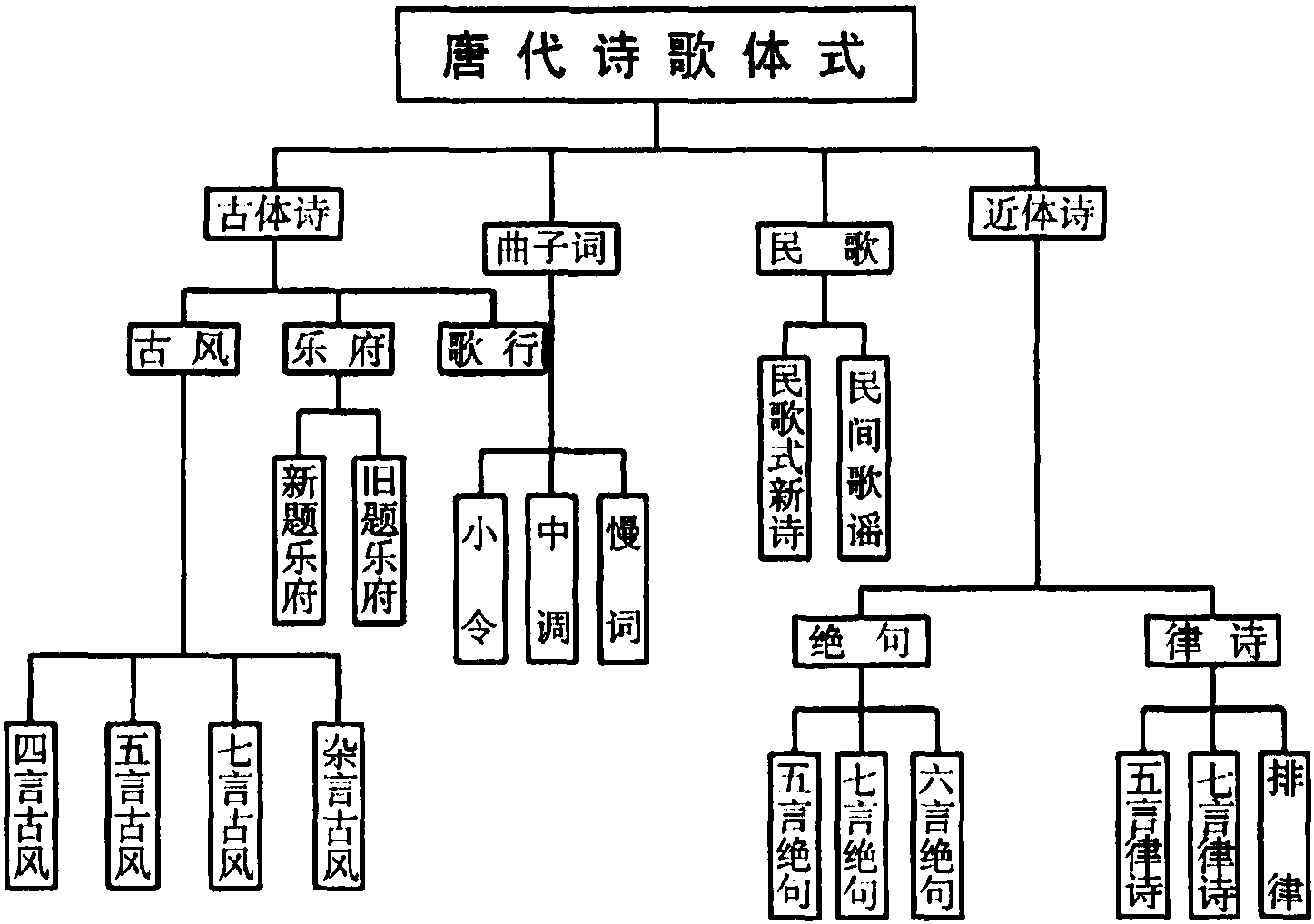 其次,唐代定型的近体诗,成为宋、元、明、清各代诗歌主要形式。直至近代,“五四”文化革命后才起了一些变化。但新中国成立后,中华传统诗词不仅没有绝迹,而是经过一段低迷以后,又以勃勃新姿与现代新诗并立于中国诗坛之上,颇有发扬光大之势。