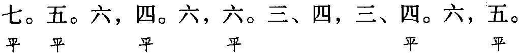 本格双片一百一十七字。全词同韵,平韵,韵字可阴平、可阳平。另有小调双片五十九字、平韵体。本词又名《接贤宾》。