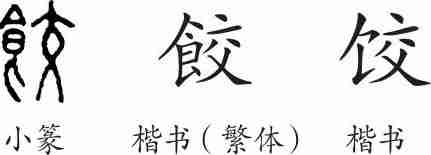“饺”是后起字,为形声字。楷书繁体写作“餃”,从食,交声。汉字简化后写作“饺”。