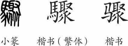 “骤”是形声字。小篆从马,聚声。隶变后楷书写作“驟”,汉字简化后写作“骤”。