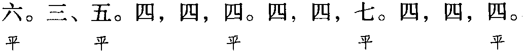 本格双片九十八字。全词同韵,平韵,韵字可阴平、可阳平。