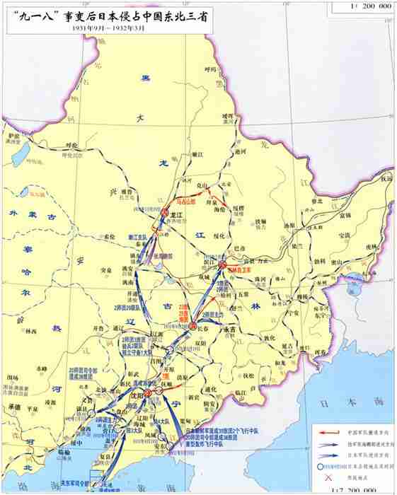 1931年9月至1932年3月,日军发动侵占中国东北辽宁、吉林、黑龙江三省的战争。
