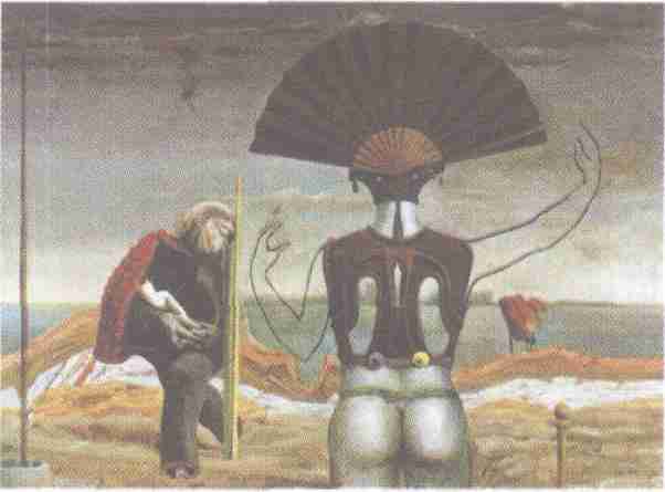 超现实主义:女人、老人和第二花(画布、油画)1923年 收藏于纽约现代美术馆