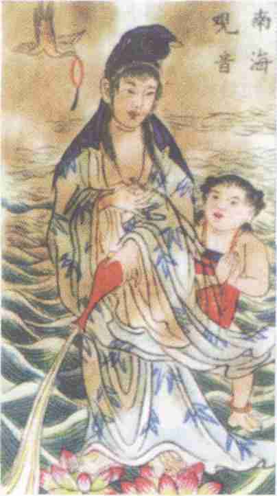 观音菩萨——即观世音领如来佛旨往东寻找取经人 。选自《老香烟牌子画丛》